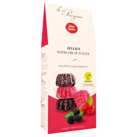Sugar, Glucose Syrup, Fruit Juice From Concentrate (Blackberry And Raspberry) 20%, Gelling Agent: Pectin, Vegetable Concentrates (Blackcurrant, Hibiscus, Carrot), Acidifier: Citric Acid, Natural Flavours.