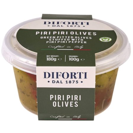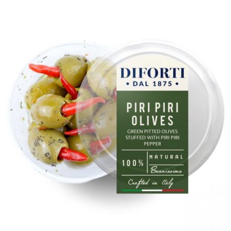 12 x 180g potsLarge green olives stuffed with red hot Piri Piri chilli peppers.