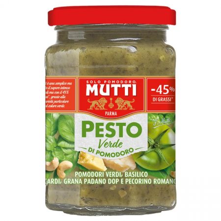 12 x 180g jarsMutti combine all the goodness of a pesto with 50% ripe Mutti tomatoes for a pasta sauce with a bold tomato twist. Ripe green tomatoes, basil, Grana Padano cheese and cashew nuts come together to create a fragrant, creamy sauce. Simply stir through hot pasta.