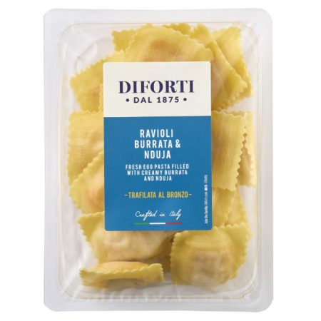 8 x 250g traysTrue Italian comfort food. Fine fresh pasta filled with the rich flavours of nduja and burrata. Simply drizzle with good olive oil and a sprinkling of Parmigiano Reggiano.