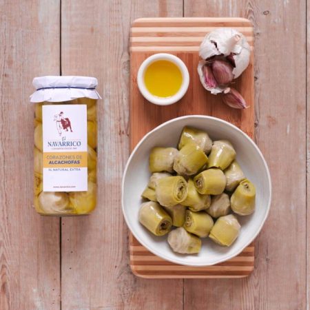1 x 660g jarsThese artichokes from Navarra are partially cooked before the leaves are removed and the hearts trimmed by hand. They are then marinated in sunflower oil, white wine vinegar, parsley and basil. The marinated artichokes have a tender texture and a nutty and citrusy flavour mellowed by the oil and the herbs. Serve in a cold tapa with Ortiz anchovy fillets, in salads or quickly roast them on a griddle.