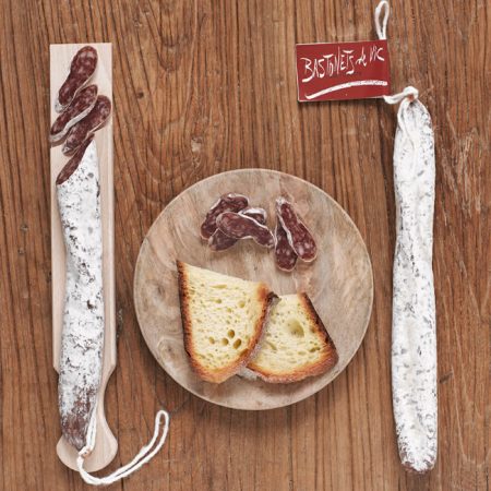 The region around the city of Vic has long been associated with pig husbandry and its elevation, and humid climate have made the town famous for its charcuterie, specifically salchichones. The fuet type of thin salchichon, of which this bastonet is a good example, is typically Catalan and is moist, slightly chewy and has a clean, lingering flavour.
