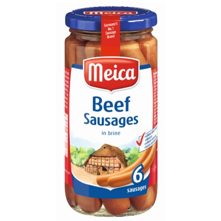 4 x (3 x 380g) jarsMeica beef sausages (“Rindswürstchen”) are made from pure beef without any added pork. The genuine beef flavour is enhanced by a specially created blend of spices.