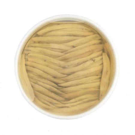 Conservas Nardin only buys anchovies caught in the Cantabrian Sea; the fish destined to be boquerones are marinated for about 8-12 hours in white wine vinegar before being drained, filleted and then packed in sunflower oil. They are firm and juicy, with an excellent balance of acidity and richness, truly delicious. Boquerones are a key element of the Spanish aperitivo (a pre-dinner drink and snack ritual). Served by themselves or with some crisps they are excellent accompanied by vermut or white wine.
