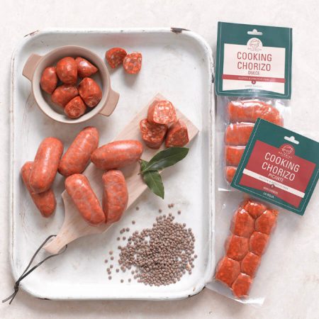 10 x 280g packetsThese cooking chorizos, spiced with mild, smoked paprika are free from any artificial colourings or preservatives and are an excellent ingredient in many different dishes. At their best poached in wine or cooked in a casserole, they add a depth of flavour, a hint of smokiness and a beautiful colour to whatever they are cooked with.