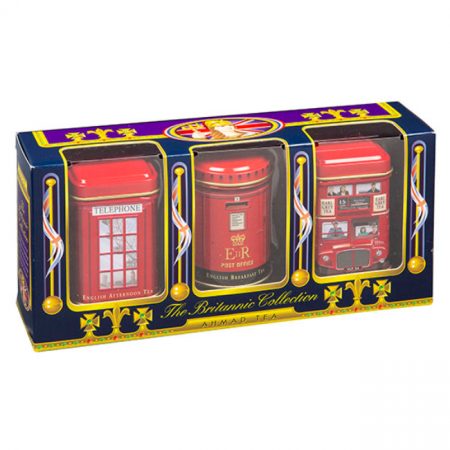 16 x 3x25g tinsTake a very British tour of London with this Britannic tea collection. Three quintessentially British tea blends are presented in three equally British caddies. Sip an English Breakfast that’s worth writing a letter home about, sit atop a double-decker bus enjoying a fragrant Earl Grey or swing by the telephone box for an elegant English Afternoon tea to finish off.