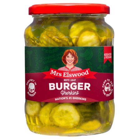 6 x 330g jarsIf a burger isn’t topped with Mrs Elswood Burger Gherkins, is it even a burger? The crinkle-cut of our burger gherkins helps them hold onto the flavour of condiments in your burger – giving an orchestra in your mouth with every bite!