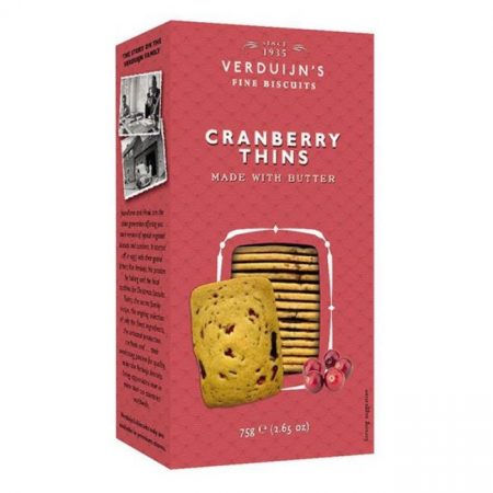Verduijn’s is a third-generation Dutch family business. Originally established in the picturesque village of Breskens. These butter biscuits are made using real cream butter and generous pieces of cranberry.
