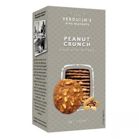 12 x 75g boxesVerduijn’s is a third-generation Dutch family business. Originally established in the picturesque village of Breskens. These thin caramalised biscuits benefit from slices of peanut in an amazing taste combination.