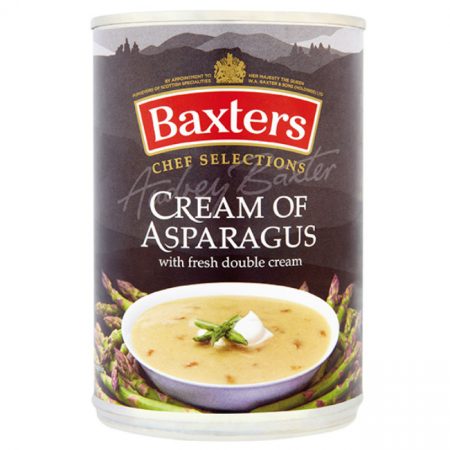 6 x 400g tinsFor this classic soup Baxters hand select the finest variety with the most tender asparagus tips and blend them with rich Scottish double cream to give a deliciously smooth texture. The result is a particularly luxurious cream of asparagus soup and a taste of pure indulgence.