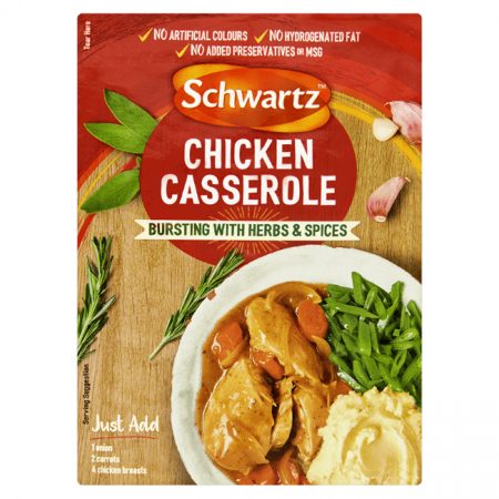 12 x 36g packetsThis chicken casserole seasoning is a recipe mix with garlic, sage and oregano for a rustic chicken casserole.