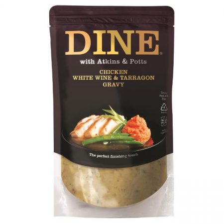 6 x 350g pouchesA gourmet gravy made with fine white wine and a subtle hint of tarragon. Simply heat and pour over roast, steamed, pan-fried or grilled chicken. Add a spoonful of Atkins & Potts Red Onion and Jalapeño Relish to add spice, or fold in double cream for extra smoothness.