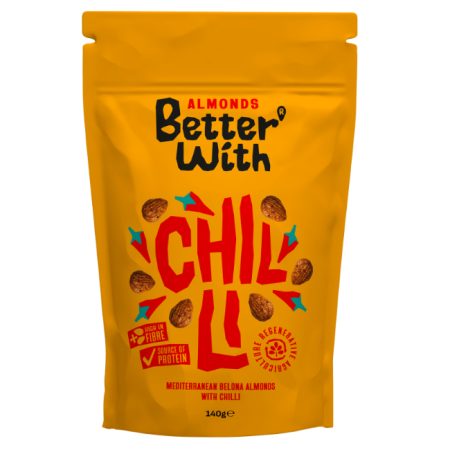 Chilli almonds are natural, gluten-free, crunchy and versatile. They have a spicy and enveloping touch, perfect for livening up your breaks. Better With Chilli are the perfect companion for drinks, snacks and small bites.