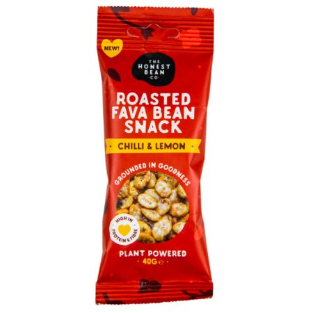 12 x 40g packetsPunchy chilli and zesty lemon meet beautiful British fava beans in this handy, on-the-go 40g sachet. These fava beans are roasted to perfection then seasoned generously. No bags of blandness here. Some say ‘it’s like a crisp and a nut have had a baby’, others say ‘how did I not discover fava beans before?’ and some are just left completely speechless. Great as a snack with a glass of something cold.