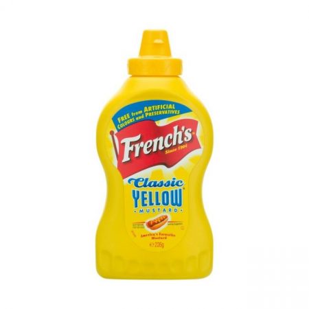 8 x 397g bottlesFrench’s Classic Yellow Mustard is made with stone ground, #1 Grade Mustard Seeds and has no artificial colours, flavours or preservatives. No corners cut, no weird stuff, just classic mustard sauce that brings food to life with zero fat, calories or gluten. Crafted by master grinders, their stone ground yellow mustard delivers the smooth texture and tangy taste your customers will love.