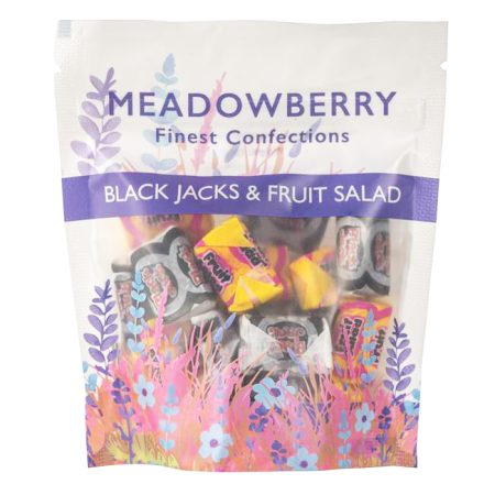 Reminisce about your childhood with every bite of these retro-inspired sweets. The bold licorice of the Black Jacks paired with the bright, fruity Fruit Salad chews create an irresistible flavour combination that’s sure to delight your tastebuds. Perfect for sharing with friends or enjoying as a solo treat, these Meadowberry Classics will transport you back to simpler times.