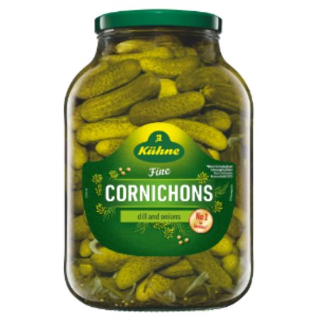 Small, fine, crunchy cornichons a savoury spicy infusion with dill and onions. Ideal for the dinner or as a snack on its own.