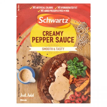 12 x 25g packetsA creamy pepper sauce with cracked black peppercorns. Delicious with beef, chicken and sausages.