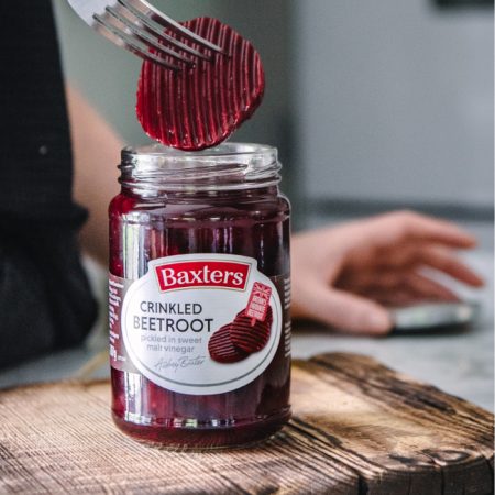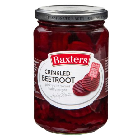 At Baxters they pride themselves on producing the highest quality and best tasting beetroot. Their freshly harvested baby beetroot is the pick of the crop. Its gently steam cooked in small batches and then hand sorted to ensure only the best makes it into their jars. They then pickle in a traditional sweet vinegar made from 100% British barley to ensure a truly delicious taste.