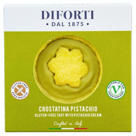 Shortcrust Pastry (65%): Rice Flour, Corn Flour, Sugar, Egg Yolk, High Oleic Sunflower Oil, Preservative: Potassium Sorbate. Pistachio Filling (35%): Sugar, Oil And Vegetable Fats (Sunflower Oil, Palm Kernel, Palm Fat), Pistachio Nuts (11%), Skimmed Milk Powder, Milk Whey Powder, Emulsifier: Sunflower Lecithin; Flavourings, Colouring: E141.