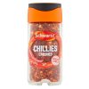 6 x 29g jarsCrushed Chillies flakes contain the flesh and seeds of whole chillies; if you want to add a warm, fiery punch to a dish, then look no further. Chilli peppers can really spice up a meal and are often used in Tex-Mex and Mexican meals. Red chilli flakes are also used as a table condiment in many cultures to add heat. Chilli pepper, the fruit of a hardy plant, has a special feature: the smaller it is, the hotter it tastes! Unlike other spices, often a small quantity is sufficient in a dish, with a single pinch adding a delicious spicy kick.