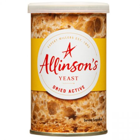10 x 125g tubsAllinson Easy Bake Yeast is a combination of dried yeast with the bread improver Ascorbic Acid (Vitamin C). Ascorbic Acid guarantees the fast action of the yeast, allowing a quick rise and eliminating the need to ‘knock back’ the dough. The dough will only require one kneading and one period of proving. The yeast can be added with the flour straight from the pack and will become activated as soon as it comes into contact with the liquid. Allinson Easy Bake Yeast is perfect for use in bread makers as well as in hand baking.