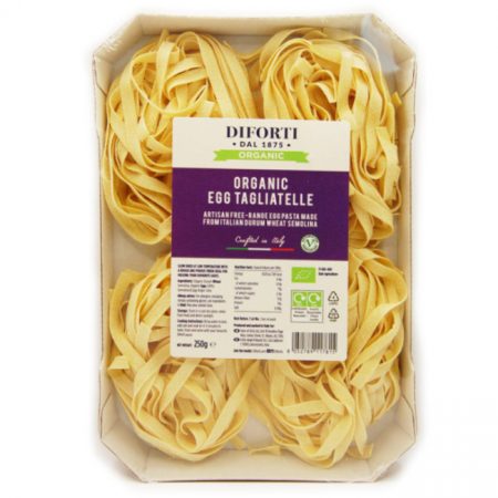 12 x 250g traysThis Diforti egg pasta is specially made by artisans using the finest ingredients and production methods that give the pasta a very coarse texture. This is what give the pasta its distinctive appearance and make it easier for the pasta to hold onto as much sauce as possible.