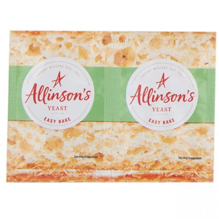 12 x 6 x 7g sachetsAllinson Easy Bake Yeast is a combination of dried yeast with the bread improver Ascorbic Acid (Vitamin C). Ascorbic Acid guarantees the fast action of the yeast, allowing a quick rise and eliminating the need to ‘knock back’ the dough. The dough will only require one kneading and one period of proving. The yeast can be added with the flour straight from the pack and will become activated as soon as it comes into contact with the liquid. Allinson Easy Bake Yeast is perfect for use in bread makers as well as in hand baking.