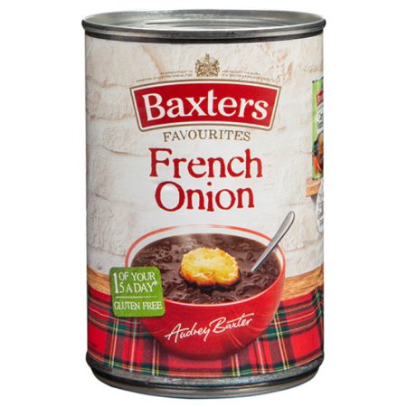 12 x 400g tinsBaxters slowly caramelise the onions until they’re perfectly sweet and then add a dash of sherry for that delicious burst of flavour: This French Onion soup is made just like it is in Provence.