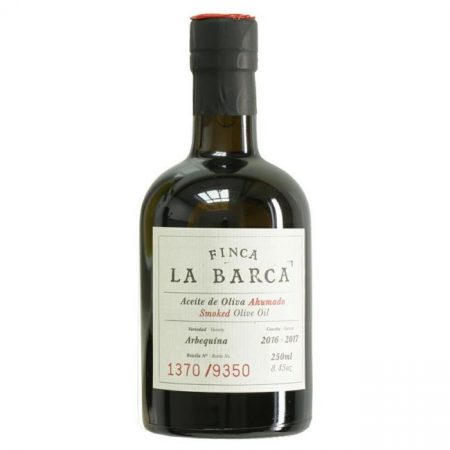 6 x 25cl bottlesFinca La Barca is a special smoked olive oil made from the Arbequina olive variety. It has been smoked using the traditional method of the Extremadura’s region of La Vera, with holm oak wood, in a process taking over 15 days. The production of this oil is strictly limited to the capacity of a single olive farm, in Toledo, each bottle numbered and closed with sealing wax. A great gift for discerning gourmets. This is olive oil creamy and delicate, aromas of banana and grass with a creamy, ripe olive fruit flavour balanced by a subtle smokiness. On the palate, it presents a pleasant peppery finish and low bitterness.