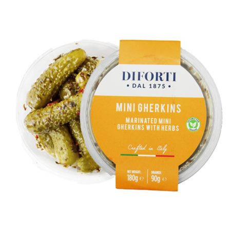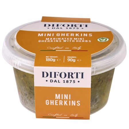 12 x 180g potsMini gherkins marinated in Diforti’s signature blend of flavourful herbs and spices.