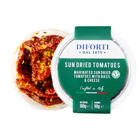 6 x 180g potsBased on a recipe from Diforti’s grandfather created more than 100 years ago, these sundried tomatoes are a true gem of authentic Italian food. Full-flavoured tomatoes are dried in the Sicilian sunshine according to ancient traditions and then refined with grated vegetarian Gran Moravia cheese and the finest of fresh basil leaves. Best enjoyed as part of a colourful antipasto platter or mixed into a pasta salad, this traditional family recipe is guaranteed to give you a boost of Italian sunshine.
