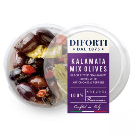 6 x 180g potsPitted Kalamata olives with red peppers, sliced artichokes, garlic and herbs in oil.