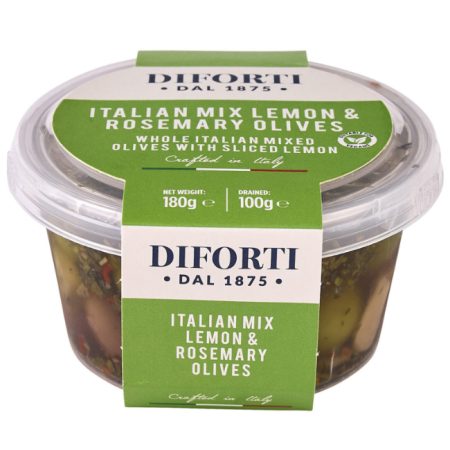 6 x 180g tubsUnpitted whole olives dressed with lemon and rosemary.