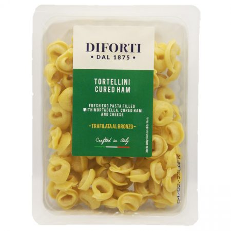 8 x 250g traysDiforti tortellini with ham, mortadella and cheese is a traditional recipe with simple ingredients and a taste that has remained unchanged over the years. Made with high-quality durum wheat semolina (prized for its high protein content), this handmade pasta is perfect for any occasion.