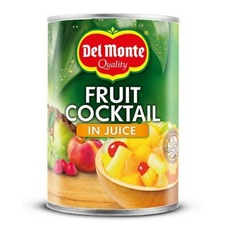 6 x 415g tinsDel Monte® canned fruit cocktail salad brings the sweetness of perfectly ripe peaches, pears, grapes, pineapple and cherries to the table with ease. Picked at their freshest peak, mixed, sliced, and diced for your convenience! Fat-free with no preservatives.