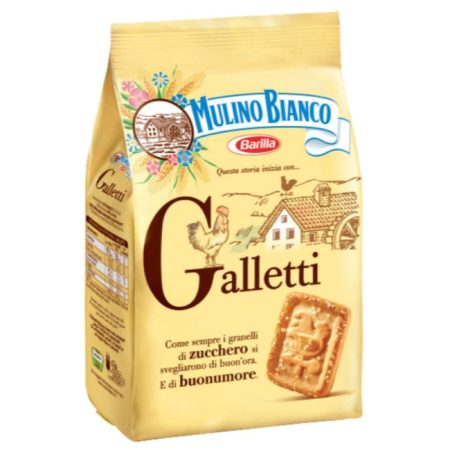 12 x 350g bagsMulino Bianco’s Galletti are light shortbread biscuits topped with whole grains of sugar to give a crunchy texture.