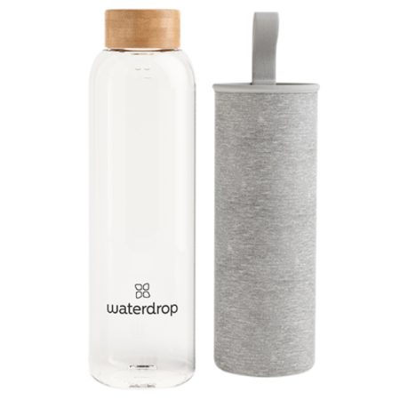 Robust in design, comfortable in-hand: each glass water bottle is designed for hydration on the go.