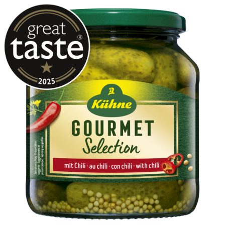 Handpicked, extra crunchy cornichons with the fine spiciness of piquant chillis give these Gourmet Selection Hot Cornichons their unique fiery aromatic note.