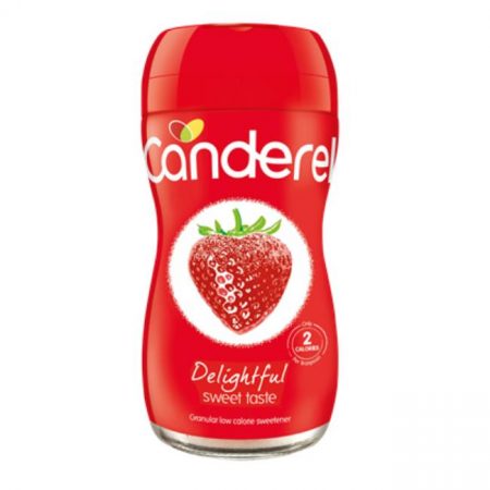 6 x 75g jarsCanderel® Granules can be used spoon for spoon in cooking and baking. Divide your sugar quantity by 8 when weighing e.g. 80g of sugar = 10g of Canderel®. The Canderel® jars have specially designed lids that are perfect for sprinkling and dusting.