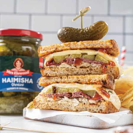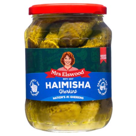 Whole pickled cucumbers with Haimisha flavour. Guaranteeing premium quality for over 70 years, Mrs Elswood pickled cucumbers are harvested at the height of the cucumber growing season during June and July every year. Cucumbers are hand-selected for their shape and size before being pickled, packed and delivered, direct from the grower, to maintain freshness and full flavour. The unique flavour and seasonality of Mrs Elswood’s kosher pickled cucumbers makes them a store cupboard essential! Ideal in a potato salad or directly from the jar for a healthy and tasty snacks!
