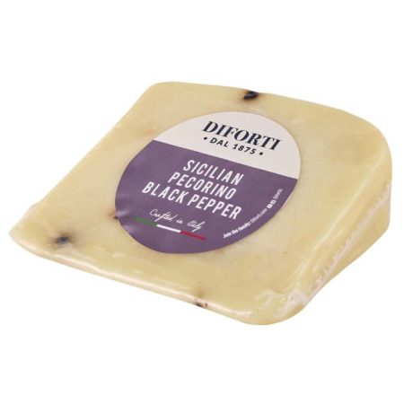 10 x 150g vac wrapDiforti’s young pecorino cheese is made from sheep’s milk and matured for 14 days, before the finest of black peppercorns are added to it for that extra addition in flavour. This cheese is a great addition to any authentic Italian food platter and tastes delicious served with Antipasti and Olives.