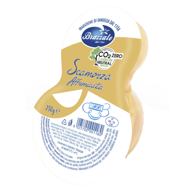 6 x 250g packetsSmoked Scamorza is a semi-soft Italian cheese that is very similar to mozzarella but which is aged which means it is firmer and drier with a more pronounced flavour. The smoked variety of Scamorza gets its smoky flavour from exposure to smoking straw for 10 to 15 minutes. The traditional pear shape of the whole cheese comes from the process of hanging the cheese by a length of string.