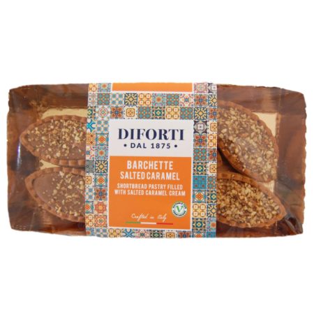 Delectable handmade barchette, an Italian shortbread pastry, is guaranteed to lift your spirits. These boat-shaped authentic Italian food delicacies are filled with a luxurious salted caramel cream and sprinkled with chopped hazelnuts. They are best enjoyed with tea or coffee for an elegant snack or sweet treat.