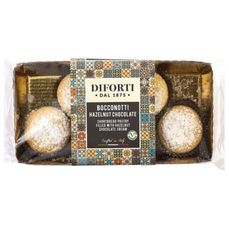 Bocconotti are a type of shortbread pastry that are a truly authentic Italian food delicacy. Filled with our favourite hazelnut chocolate cream and dusted with sweet icing sugar, our bocconotti are best enjoyed over a cup of coffee or tea. These pastries DO NOT require refrigeration. Once opened, please keep in a sealed container and they will keep fresh for up to 1 week.
