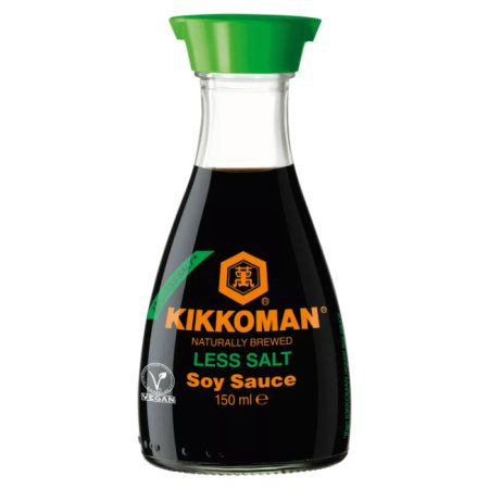 6 x 150ml bottlesKikkoman has acknowledged our growing enthusiasm for a healthy dietary balance by launching a Less Salt version of its famed naturally brewed soy sauce which doesn’t compromise on taste despite containing 43% less salt. Look for the green cap in shops. The recipe uses a special fermentation process which produces a similar flavour and aroma to Kikkoman’s original soy sauce but with 43% less salt. Like the original, there are no artificial colourings or flavourings.