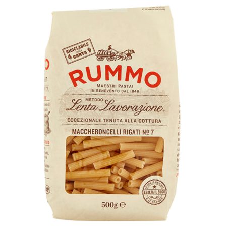16 x 500g packetsA diminutive version of classic maccheroni, Maccheroncelli® Rigati is an exclusive Rummo shape well suited to any number of sauces or casseroles, as well as to cold recipes with sautéed vegetables.
