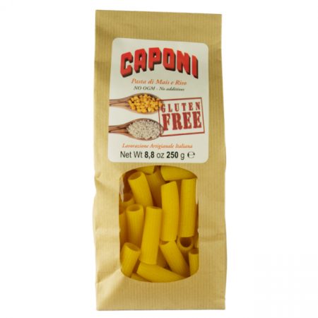 12 x 250g packetsGluten free Maccheroni. The long drying time (70-80 hours at room temperature) is a distinguishing characteristic of the Pastifico Caponi. Produced using bronze dyes. Cooking time: 7/8 min.
