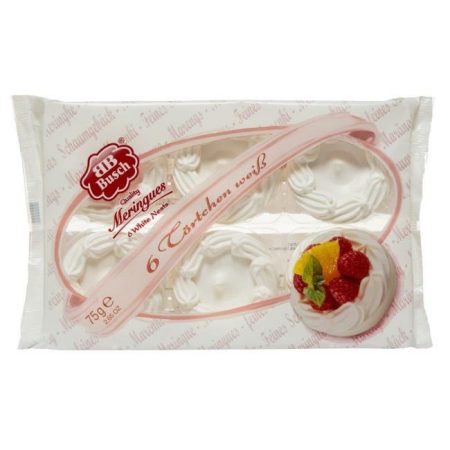 6 ready to fill white meringue nests, just waiting for cream and summer fruits.