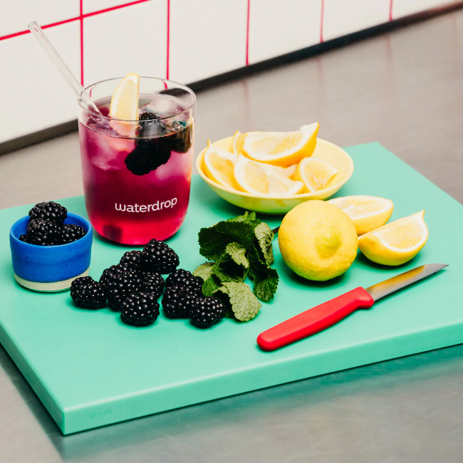Effervescent cube used to create a refreshing drink with blueberry extract, the taste of blackberry and apple extract, with sweetener and vitamins.